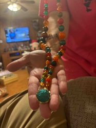 Vintage Multi-Color Glass Bead Statement Necklace with Cabochon Pendant