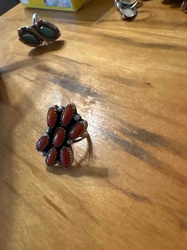 Vintage Zuni-Style Red Coral Silver Cluster Ring