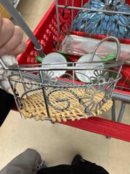 Mixed-Material Chrome and Woven Wicker Decorative Basket
