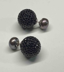 Honora Sterling Silver Black Crystal Pave and Gray Pearl Double-Sided Stud Earrings