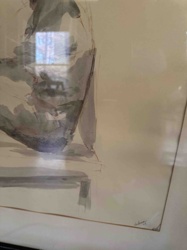Signed Abstract Figurative Charcoal and Wash Drawing