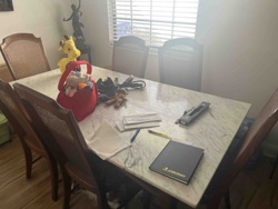 Marble-Top Rectangular Dining Table with Cane Back Chairs