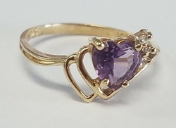 10k Yellow Gold Amethyst and Diamond Triple Heart Ring