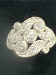 Vintage 14k White Gold Diamond Filigree Dinner Ring