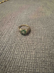 14k Yellow Gold Natural Emerald and Diamond Flower Cluster Ring