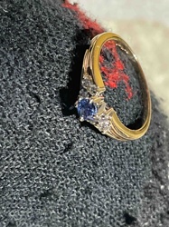 14k Yellow Gold Blue Sapphire and Diamond Bypass Ring