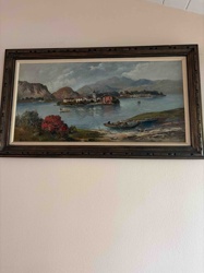 Mid-Century European Lakeside Landscape Oil Painting
