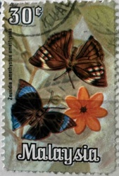 1970 Malaysia Zeuxidia amethystus 30c Butterfly Postage Stamp