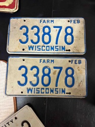 Pair of Vintage Wisconsin 'Farm' License Plates