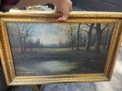 19th-Century Style Pastoral Landscape Painting in Ornate Gilt Frame