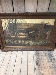 Late 19th or Early 20th Century Cottage Landscape Oil Painting