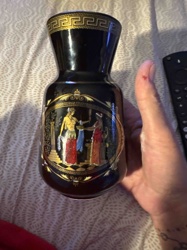 Black Ceramic Vase with 24K Gold Greek Figures