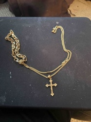 14k Yellow Gold Crucifix Pendant and Curb Link Necklaces