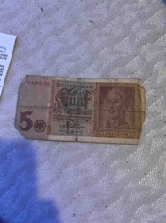 1942 German 5 Reichsmark Banknote