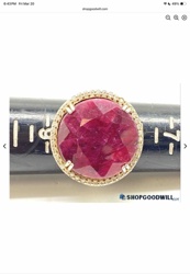 Rose-Cut Ruby Halo Ring in Gold Tone Setting
