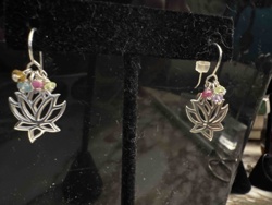 Sterling Silver Lotus Flower Earrings with Multi-Gemstone Accents