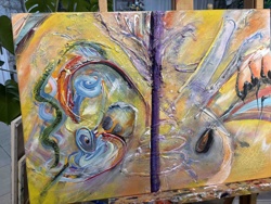 Multi-Panel Abstract Expressionist Painting of Figures
