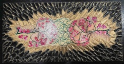Mixed Media Abstract Painting of Anatomical Lungs and Flora