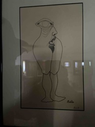 Framed Ink Drawing with Inscription
