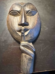 Modernist African-Style Carved Wood 'Shhh' Mask