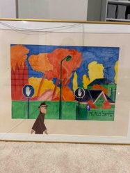 Modernist Cubist-Inspired Watercolor Landscape Painting