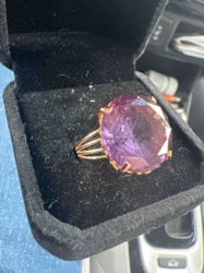 Large Round Faceted Amethyst or Alexandrite Cocktail Ring in Yellow Gold