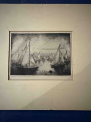 Nantucket Harbor Etching by Inez Harrington Whiting