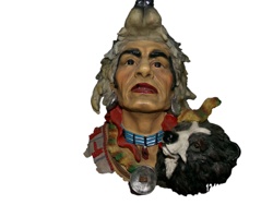 Native American Shaman Wall Bust with Wolf Headdress and Bear
