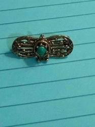 Vintage Filigree Turquoise Cabochon Bar Brooch