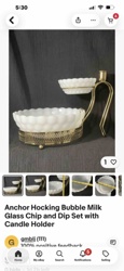 Anchor Hocking Bubble Milk Glass Chip and Dip Set with Candle Holder