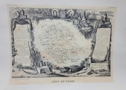 Antique Illustrated Lithograph Map of the Department of Tarn, France