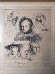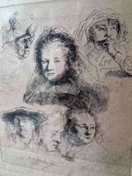 Rembrandt van Rijn, Studies of the Head of Saskia and Others (Etching, 1636)