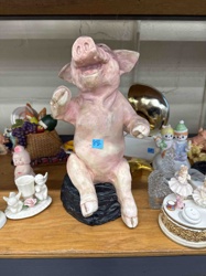 Whimsical Anthropomorphic Laughing Pig Figurine