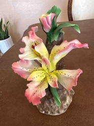 Dominate Italy Hand-Painted Ceramic Orchid/Lily Figurine