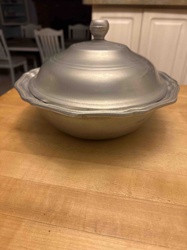 Vintage Pewter or Tooled Aluminum Covered Casserole Serving Dish