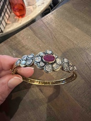 Indian Polki and Ruby Hinged Bangle Bracelet