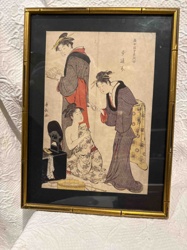 Framed Torii Kiyonaga Ukiyo-e Woodblock Print