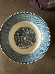 Blue Transferware Cream Soup Bowl or Shallow Rimmed Plate