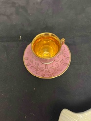 Gilt-Lined Pink Porcelain Espresso Demitasse Cup and Saucer