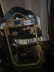 Vintage Arched Art Deco Style Stained Glass Wall Mirror