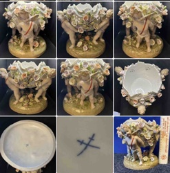 Meissen Style Putti and Roses Porcelain Centerpiece Bowl