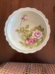Antique T&V Limoges France Small Porcelain Footed Bowl with Almond Decoration