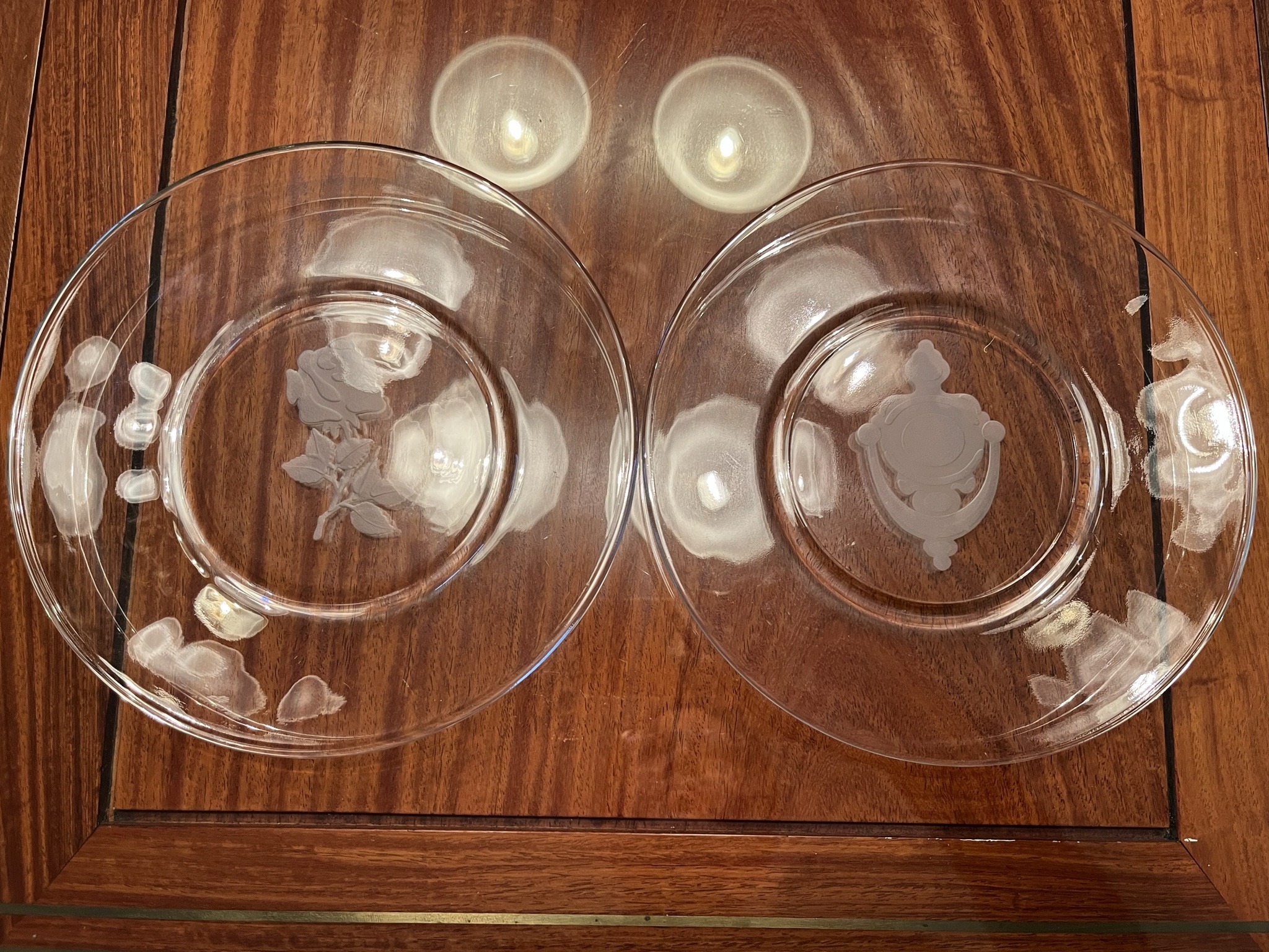 Pair of Mid-Century Frosted/Etched Glass Salad or Dessert Plates