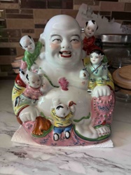 Porcelain Laughing Buddha (Budai) with Children Figurine