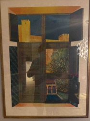 Framed Architectural Serigraph of a Mediterranean Palace View