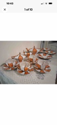 Art Deco Geometric Tea Service in Orange and White