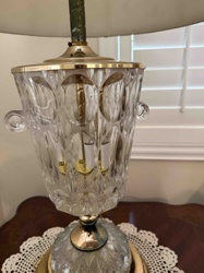 Mid-Century Hollywood Regency Cut Crystal and Brass Table Lamp
