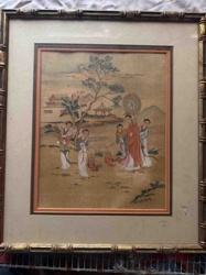 Framed Japanese Embossed/Textile Geisha Art