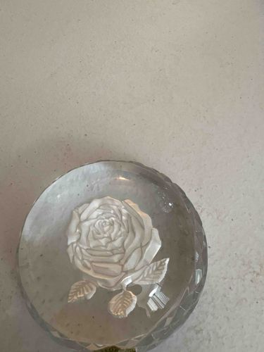 Etched Rose Crystal Paperweight