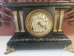 Antique Slate/Marble Mantel Clock with Gilded Inlay